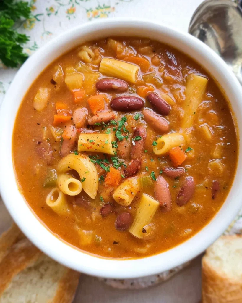 This Pasta Fazool offers a heartwarming bowl of beans, veggies, and tender pasta, making it a comforting and budget-friendly meal option fit for any occasion.